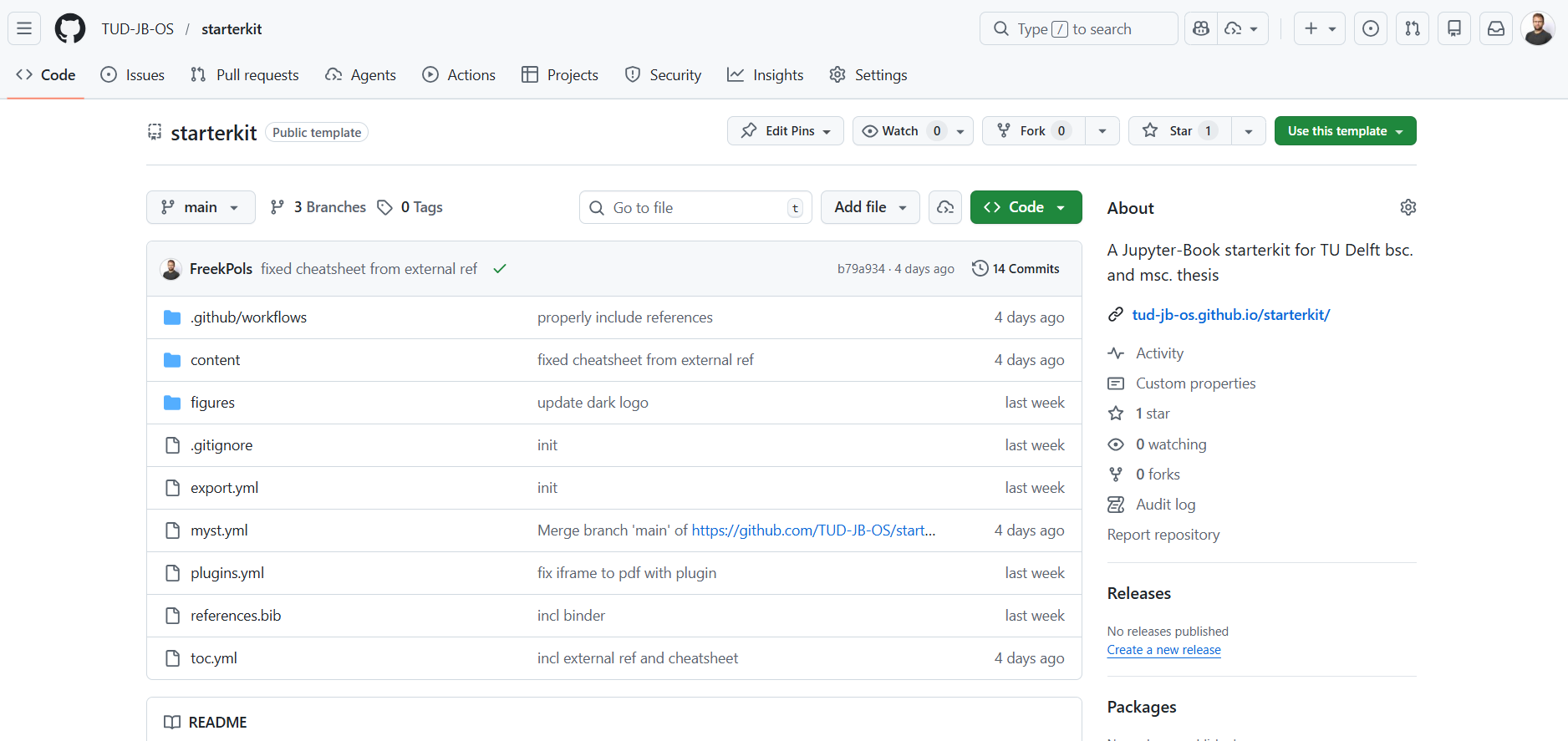 The instructions on this page guide you through the process of setting up your own thesis (repo) by creating a (new) GitHub repository using the starterkit template repository.